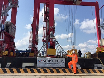 Discharge, move and install 04 shore cranes Mitsui from barge to port ICT Phu Huu